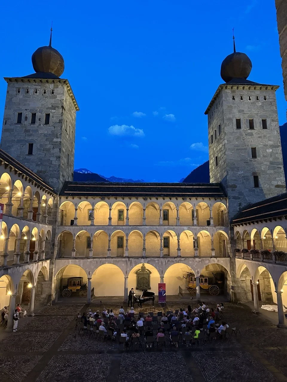 No reservation, open seating. 70 minutes without interval.ⓘ The concert is planned as an open-air event in the arcades of Stockalper Castle. In case of uncertain weather, the concert will be held in the Rittersaal. No reservation is required for either venue.